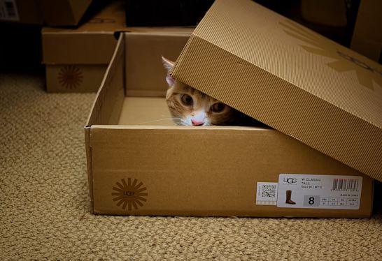 I’ve noticed several really cute photos on Pinterest of cats sitting inside Ugg boots, so while I still had the shoe pyramid going I tried to incorporate Simon into some of the shots. He would NOT settle into a boot, but he did like the empty boxes.
