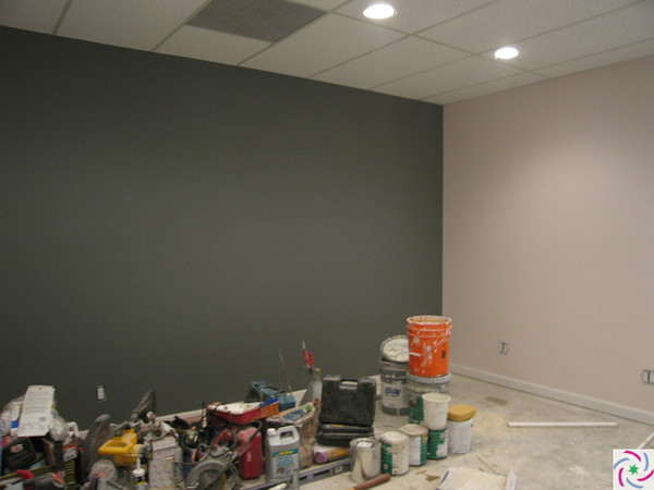 A studio in progress with 18% gray wall – supposed to be the best color for photography