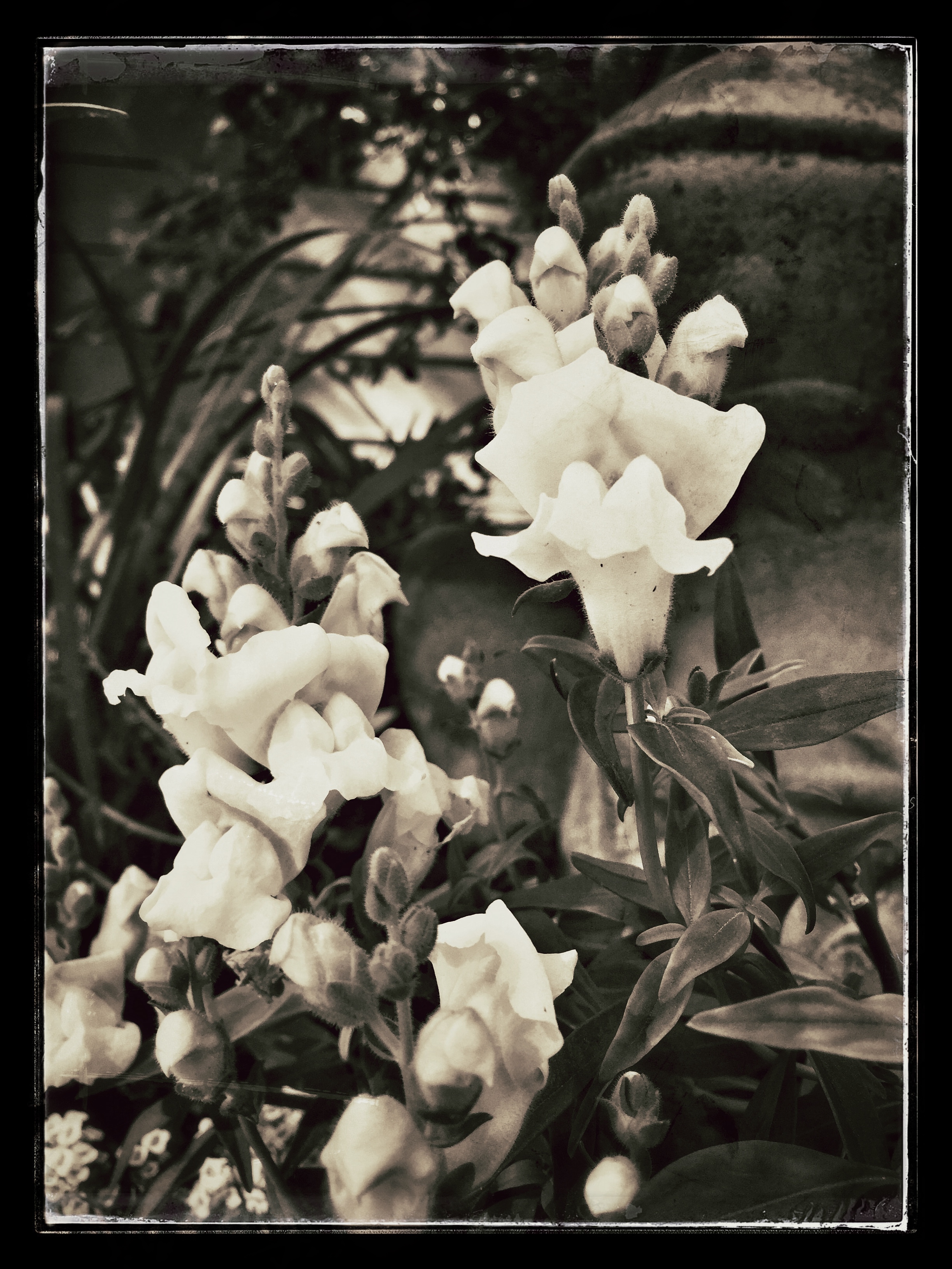 The rest of the photos I’m going to share came from my new iPhone 6 Plus. Since abandoning my 365 project, I’ve fallen out of the habit of taking a DSLR anywhere, and twice this week I regretted not having at least my SL1 with me. Once was at my father-in-law’s house, because he has beautiful gardens (my mother-in-law was a master gardener, and after she died Jimmy hired someone to keep everything blooming year-round just as she liked it) and I realized I could have used some of the day to take photos of flowers; instead I popped off a few with my phone to see what I could come up with, then edited them in Snapseed – again, on my phone: