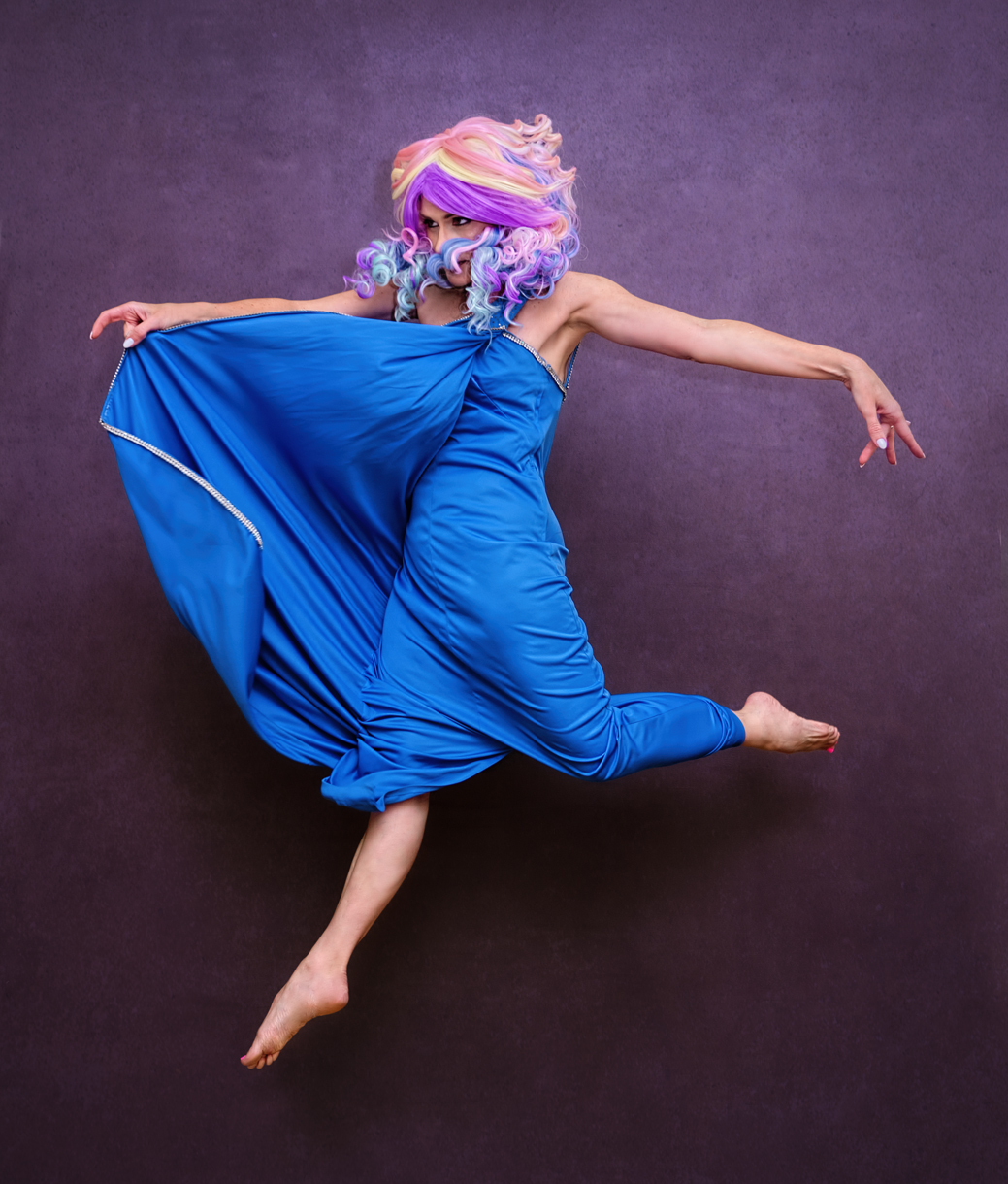 I kind of wish I’d had a normal wig on here; the pastel hair distracts from the shocking balletic movement I managed to pull off in this shot. I didn’t think I’d be able to change it to a plain color without it looking fake though.