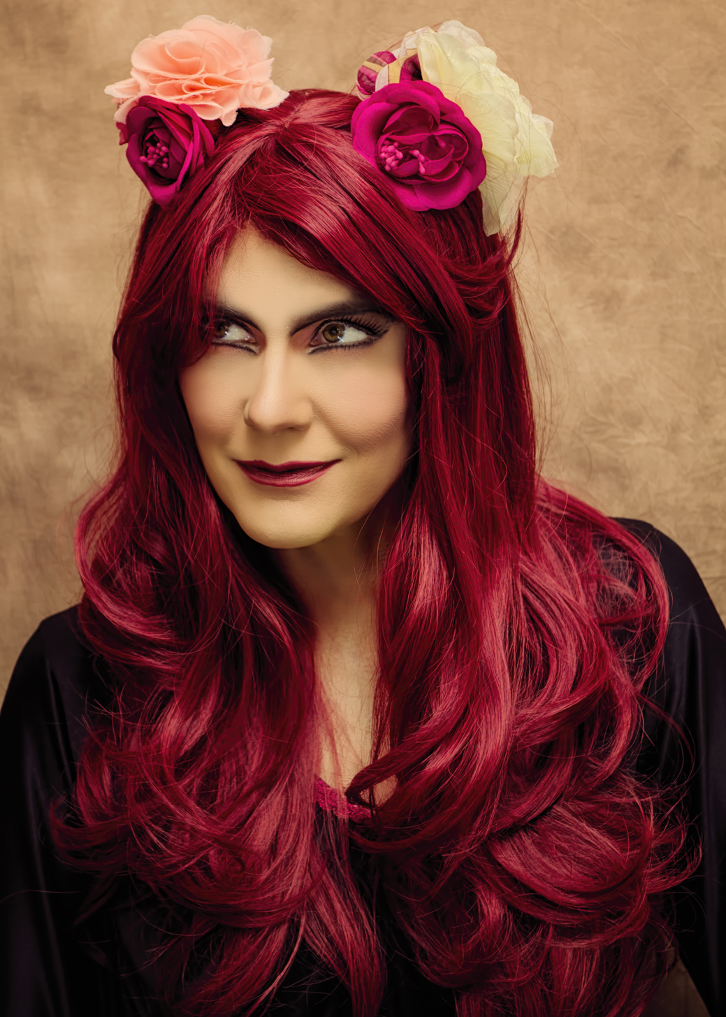 One thing that’s tricky about editing such old shots is all the techniques I’ve learned since weren’t employed in them, so I have to navigate around, say, super-wrinkly, ineffective backdrops, or bad lighting, or makeup that does nothing but accentuate my wrinkles and pores. So, I’ve had to use a lot of textures and other extras to conceal the flaws. It’s true what they say – best to get as much right in the actual shot as possible, and leave yourself less to correct in processing later.