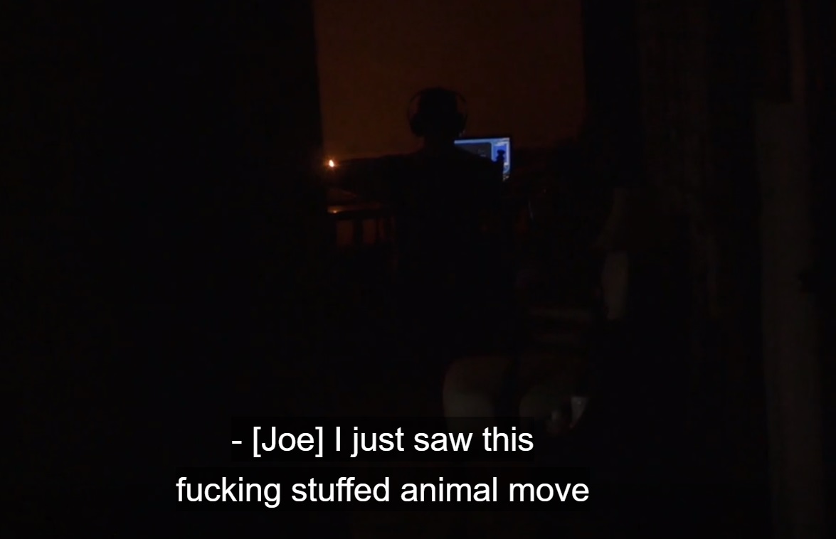One of the talking heads, Bradley, cuts in with some candids of Chase while telling us that he’s seen Chase’s last video. Remember the talking heads? Because I’d forgotten all about them. Cut to – no surprise here – Chase’s last video. It’s nice of Bradley to share it. Chase is drinking in his room and it appears to be some time after Margot left since he’s at least half-drunk now. I’m not sure he should be drinking with his medication, but given the circumstances, I can’t judge. There’s a knock at the door, and yep – I still hate that sound.