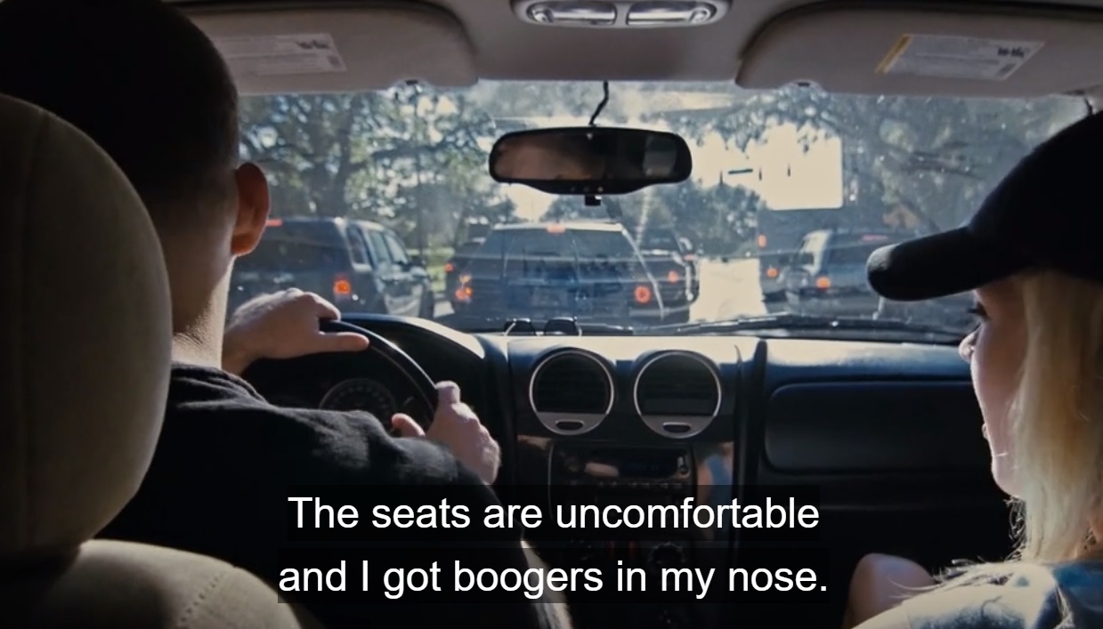 We cut to some previews of the scary shit that’s about to happen, hear a lot of screams and a garbled 911 call, fade to black, and here we go. Cut to Rebecca driving and complaining about being hungry. They stop and eat somewhere while asking the cashier what he knows about Carmicheal Manor. He appears surprised that they are going to be staying there for five days. Margo is super-proud of this; clearly, she feels like she’s pulled off a major coup by wrangling this arrangement out of the property manager. They drive around lost for a while to establish just how REMOTE this place is and how great its internet is despite being so REMOTE, something the property manager will blow out of the water a few minutes later when he mentions being located only fifteen minutes away, but I digress. When the find the house, Rebecca inexplicably asks Margot: “What, do we just knock?” No, Rebecca, climb up onto the roof and shimmy down through the chimney. Don’t forget to bring gifts!