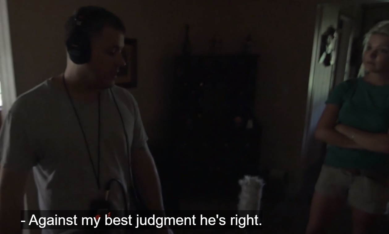 Rebecca’s computer shuts down without any explanation given to bad-actress-boss, and she’s concerned that she’s just lost her job. She’s way more concerned about the freaky dead girl getting up in her face, though, because she’s packing to leave as she rants about how she’s getting tired of being the one who supports Margot through all these investigations but can’t get Margot to support her need to get the fuck out of this house ASAP. Margo basically just wants to see if the footage of this event was recorded on Rebecca’s computer so she can see it, so to say she’s not listening to Rebecca at all is an understatement. But, of course, Rebecca capitulates for some reason and agrees to stay another night. We do get a gorgeous sunset shot of Rebecca sitting on the front porch talking to Chase, and it doesn’t help infuse the setting with dread but it is lovely. I wonder if this place still takes reservations?