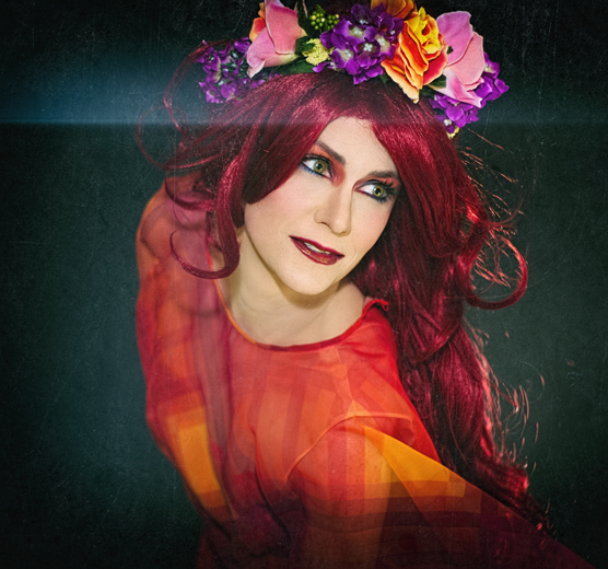 All of this skin retouching stuff got me excited about working with portraits, so last Friday I decided to try another shoot and give myself some newer stuff to work with. I’ve got my Portrait Pro software down to the extent that, in most of these photos I’ve already shared, I had nothing but foundation, highlight and contour, and powder on my face in the actual shots. ALL of the color on the face, including the mascara and the eyebrows, has been added digitally. This really helps me with prep-time for taking self-portraits, as so often the amount of time putting on a full drag face is so long that by the time I am done applying, I don’t much feel like doing the work of posing for the shoot. Now I can slap on the basics fairly quickly and get to work, although applying more makeup on the front end is always going to be preferable – something I REALLY learned in this last shoot.
