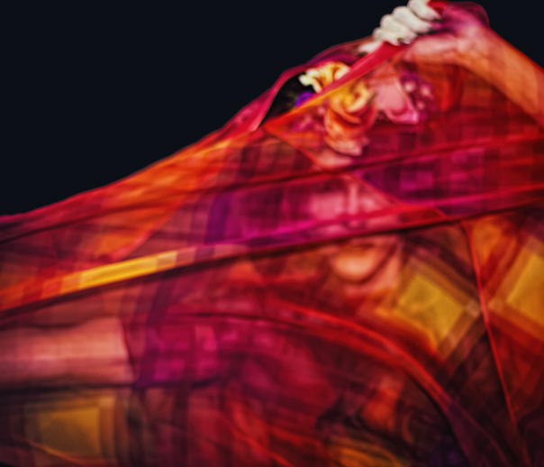 One other thing I did during the shoot to liven things up, but that also didn’t work out all that well: a few times I held up some props to my face, thinking I could edit those elements out of the shots and apply them to my experimental faces as well – sort of like Mrs. Potato Head bonus features, if you will. But even that was primarily a fail; even though there wasn’t much going on in the initial shots that I had to deal with when compositing later, there was enough that it made it hard to use the props without them being obviously pasted onto my face. For example, I thought sticking a peacock feather over my eye would be kind of awesome; on its own it’s not such a grand idea, but if the peacock feather could look like it was actually growing out of my face it could be kinda cool. Except, when I held the feather up to my eye I didn’t center it properly, and when trying to move it around on another head shot, all the places in the original photo where the head scarf and parts of my face showed through the spines made it impossible to work with without looking totally ridiculous and I am not talented enough to highlight and copy something this intricate without screwing it up royally. To compensate for that, I filtered it to death, and what I ended up settling for in the final version was pretty much laughable and lame – when I look at this, I just think, and why does this photo even exist, exactly? It literally serves no purpose whatsoever, except to confuse the viewer as to why the photographer even wasted her time on such foolishness: