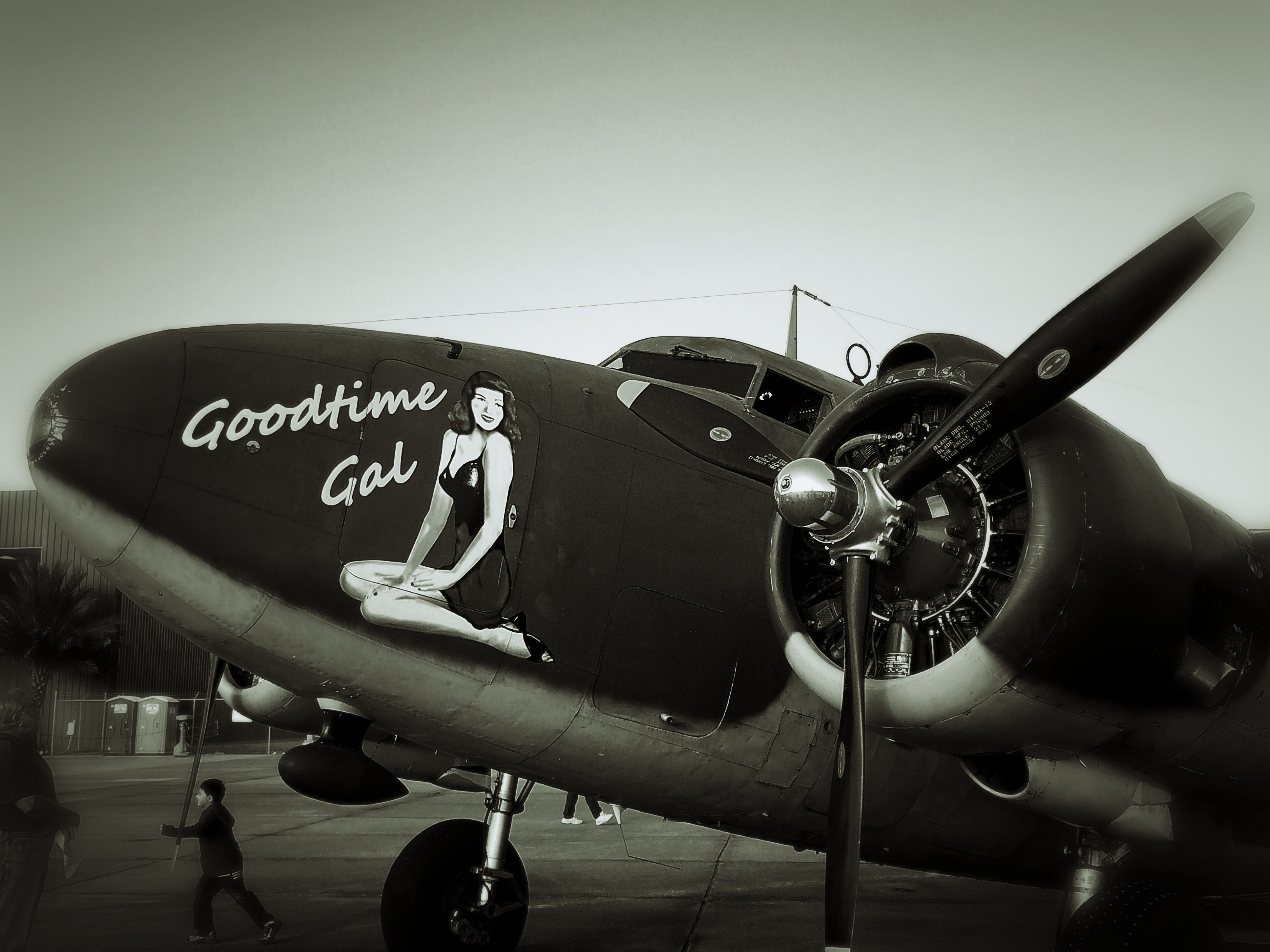 I processed this one in black and white because the color just didn’t add anything to it. I especially like the young guy’s shadow on his dad’s (I assume) shirt. They were probably looking up into the cargo hold at all the people standing in line inside and thinking to themselves, why on earth would those idiots stand in line so long just to spend two minutes inside a stuffy cockpit? Well, because we can, dude. That’s why.